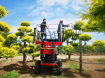 多功能高空作业平台集多种功能于一体,具有一机多用、安全高效等特点。平台动力分为柴油动力和电动动力,柴油版采用原装进口久保田发动机,省油更放心,电动版采用72V150A/时,电池组,动力强劲,经济环保。可自由搭配各种配套装配,可实现高空作业、养护、搬运、运输、吊装、户外发电、户外液压、灌溉打药、高压清洗等功能。园林高空作业车。